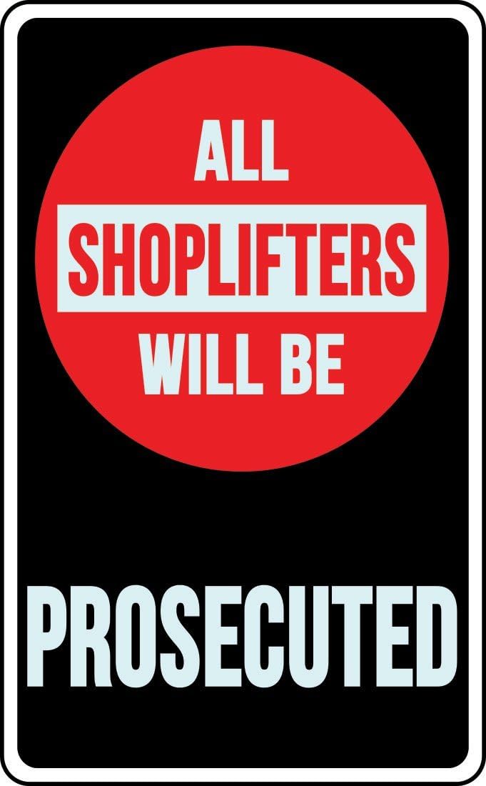 Print free shoplifters will be prosecuted sign shoplifters. Shoplifters will also wear worn out clothing so that they can put on the new clothes, discarding their grubby garments and leaving them behind.
